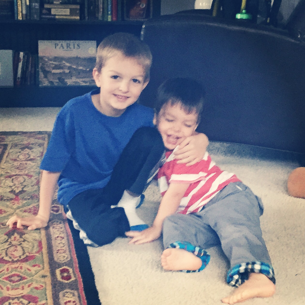 As I picked my head up from my phone, I observed my oldest and my youngest giggling uncontrollably. Tucker was teaching Wes a new game; they were spinning and getting dizzy and playing tag all in one and then went on to attempt charades. It was hilarious. I knew I had a friend coming over a few hours later who could drop Tuck off on her way out, decided quickly it was going to be a “home day”, and cozied into my couch with my cup of tea, laughing, delighting in the scene unfolding in front of me. Tuck had had a hard day the day before, crumbling into tears at numerous points over simple decisions and bedtime, as if he had never made a choice or gone to sleep before. And as I settled into what the day had served me, I recognized quickly that some rare play time with the littlest of the bunch, who ADORES his “Tutter” along with a little extra attention from mom, was just what this high strung, control oriented, sensitive little leader needed.